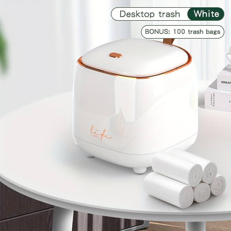 TEMU 고급스러운 압착형 뚜껑 쓰레기통과 쓰레기봉투 5개 롤